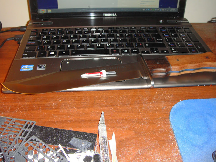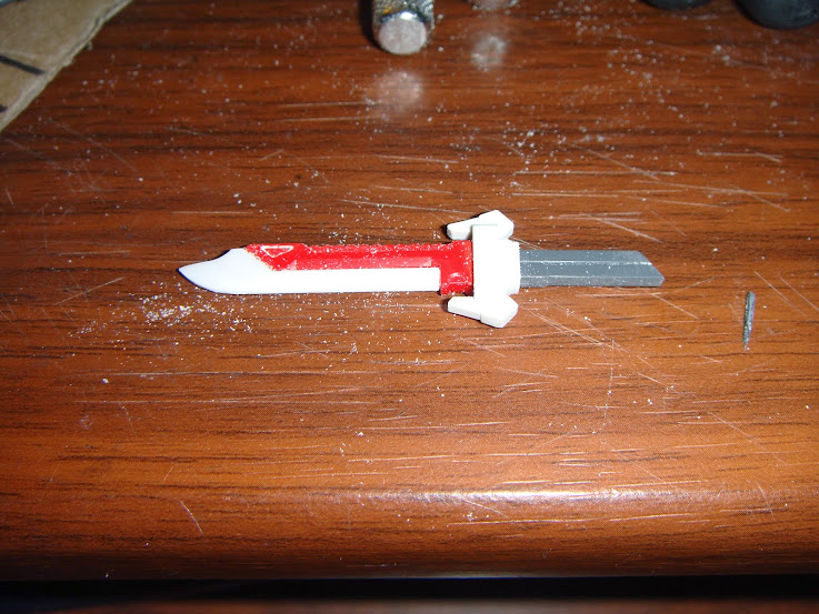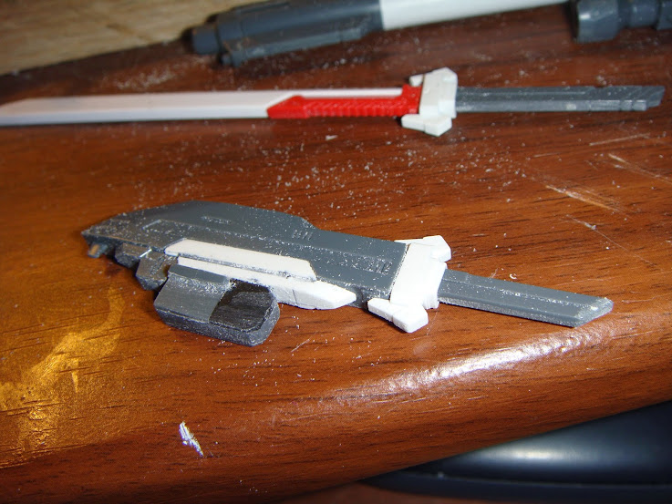 I modified one of the Strike IWSPs Anti-Ship Swords into a long modified Tanto style blade. This I intend to attach to the left shoulder to keep things asymmetrical.