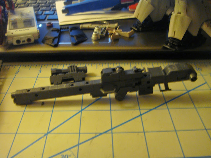 I've also been trying to build up a rifle, that will look a little more unique from the standard kotobukiya affair, sorry for the blurry picture.