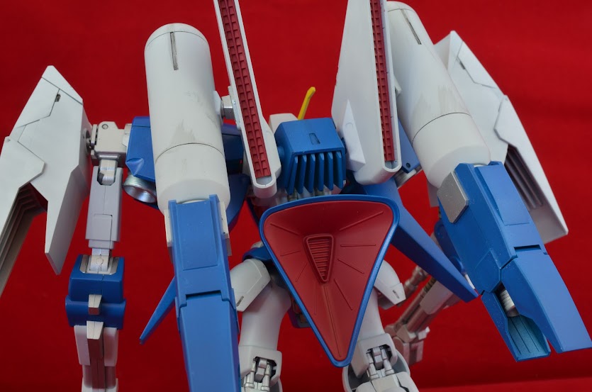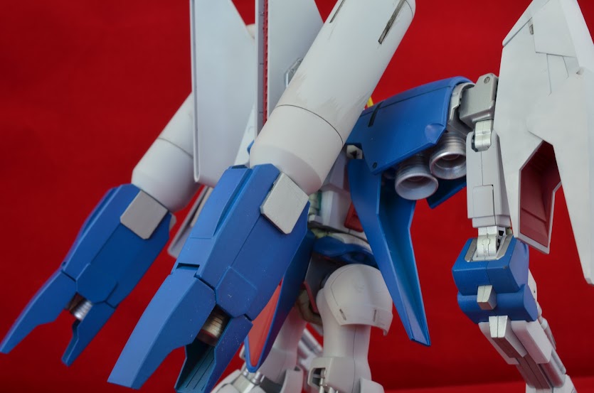 subtle look, Carmine Red for some of the thrusters, Deep Yellow for the antennae, Steel for the frame parts, Chrome that doesn't actually look all that much like chrome for the rest of the thrusters and some Black wash for the lines.